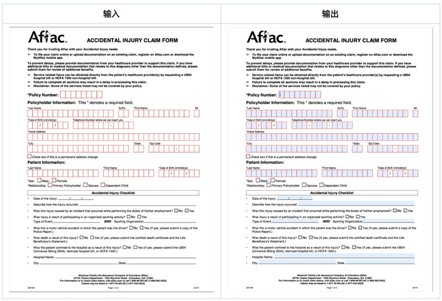 – 支持多种字段类型识别,包括文本、复选框、签名等;