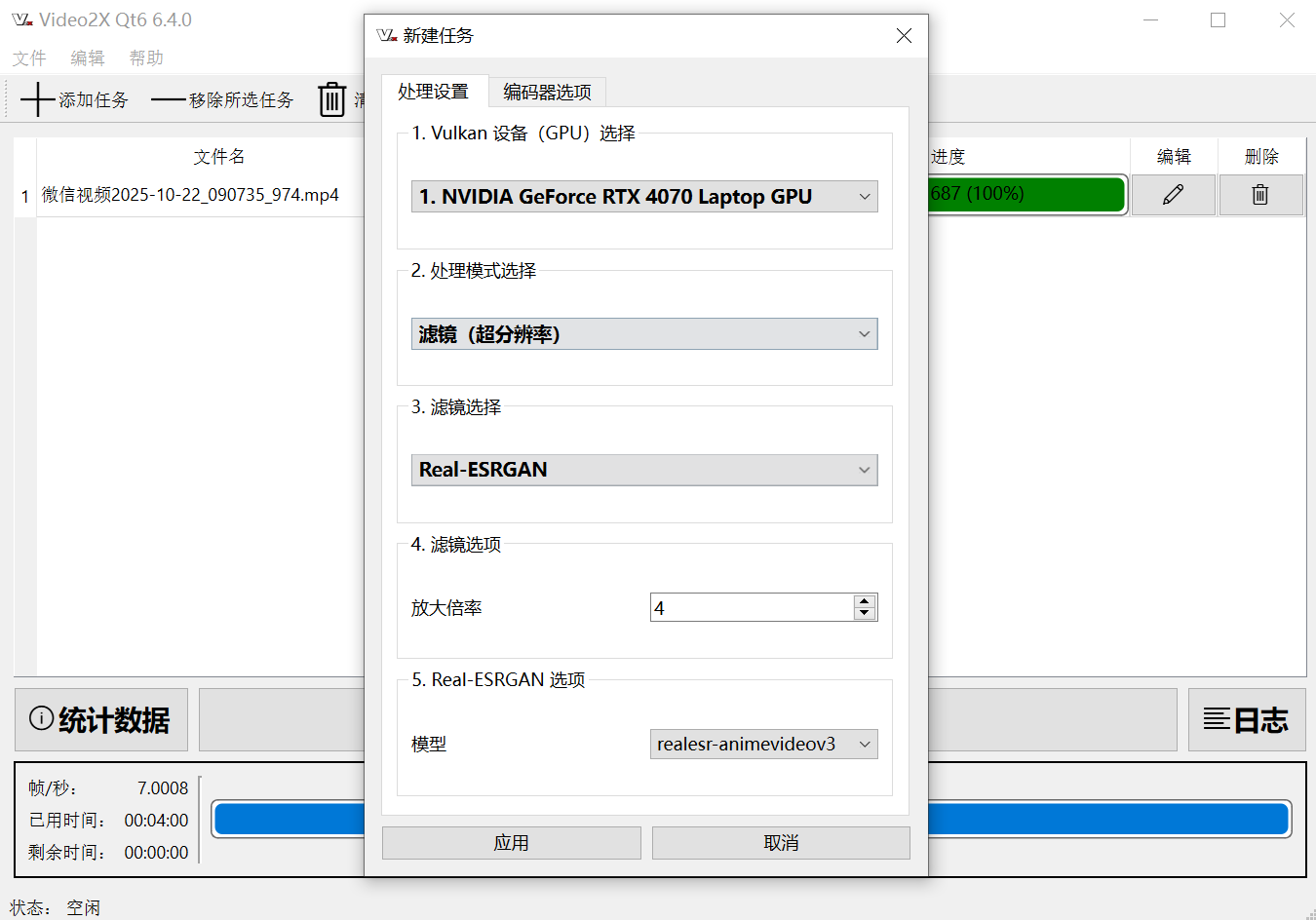 - 图形界面(GUI):对于大部分用户,特别是刚接触的新手,这是最推荐的方式。最新版本的Video2X提供了全新的图形界面和安装程序,操作非常直观。你只需要打开软件,导入文件,选择算法和放大倍数,然后开始处理即可。