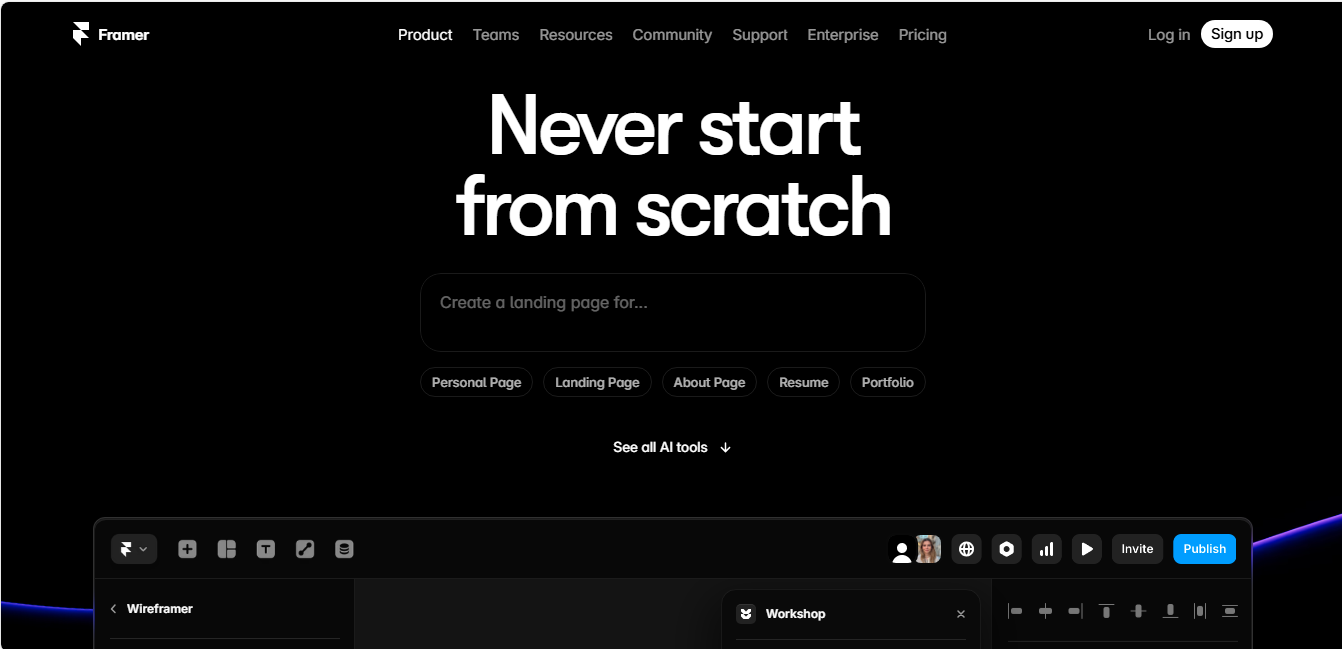 - 点击上方的访问官网按钮,跳转到Framer AI的官网