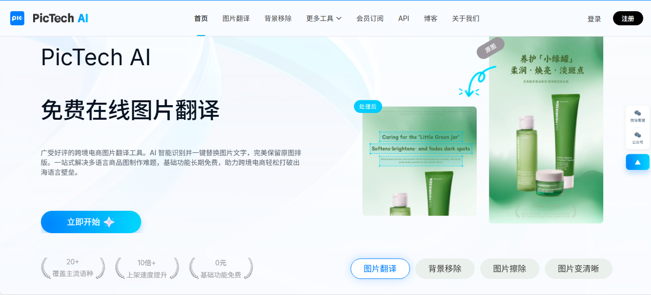 PicTech AI—免费的在线图片翻译工具,支持一键抠图
