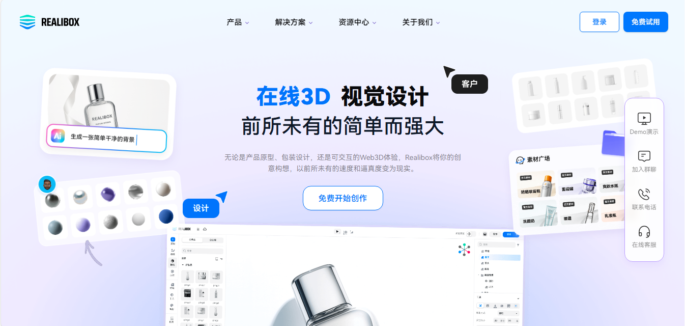 Realibox引力波是一个一站式在线 3D 设计与协同平台,提供一站式3D建模、3D渲染,多人同时编辑设计作品,随时在线评审,海量设计模版素材,设计一键交付等功能。Realibox最新推出AI造物功能,将生成式 AI 与产品设计融合,白模生成渲染、草图生成渲染图、文字生成材质贴图,Realibox AI 助你快速提案,用AI重塑产品设计生产力。
