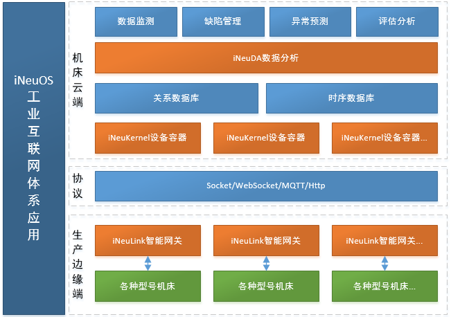 iNeuOS工业互联网操作系统对接大规模的机床数据采集网关,支持高并发交互数据。