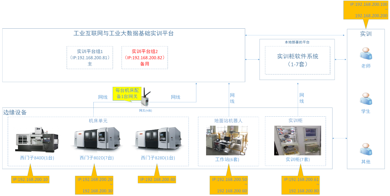 通过实训实验室和实训柜等设备,边缘侧工业物联网的各种硬件设备、硬件接口、通信协议、通信机制、数据交互和智能应用软件等场景进行应用实验的学习、使用、开发,进行应用型的研究、探索,从而支撑创新型的研究、开发和应用。