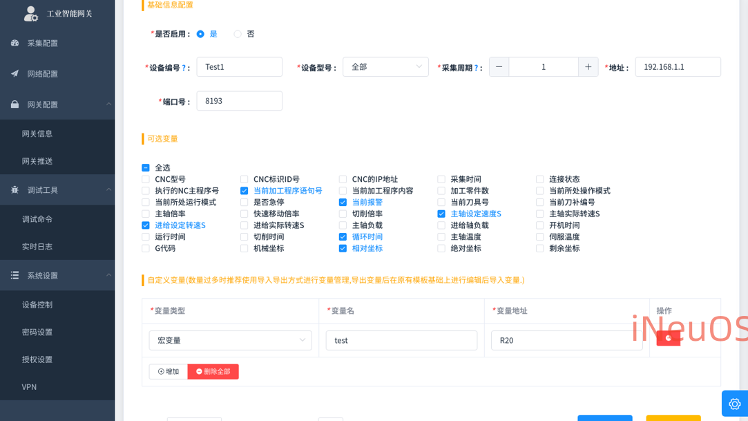 iNeuLink-X2000 是工业级智能网关,一款全新的工业数据采集转发设备,集通讯接口服务器、工控机、工控软件于一体的智能设备。她具有以下的基本功能: